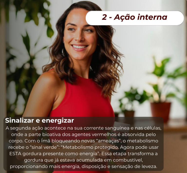 Com o metabolismo ativo e o bloqueio ligado, o corpo entra num ciclo inteligente: queima a gordura que tem e não deixa acumular de novo.